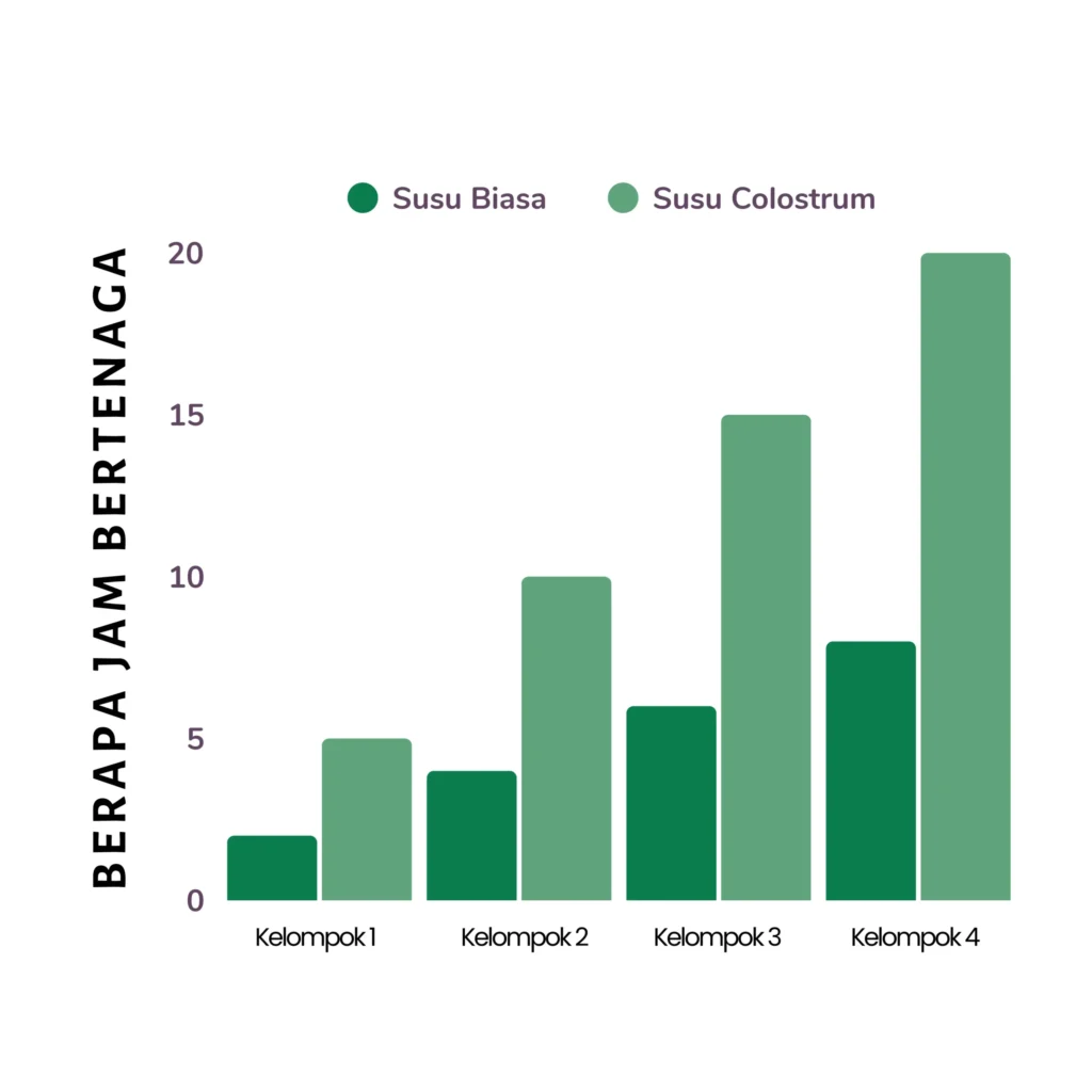 Analisis menunjukkan Susu Colostrum memberikan keberkesanan yang ketara untuk membekalkan tenaga harian terhadap kelompok berbanding susu biasa.